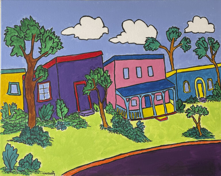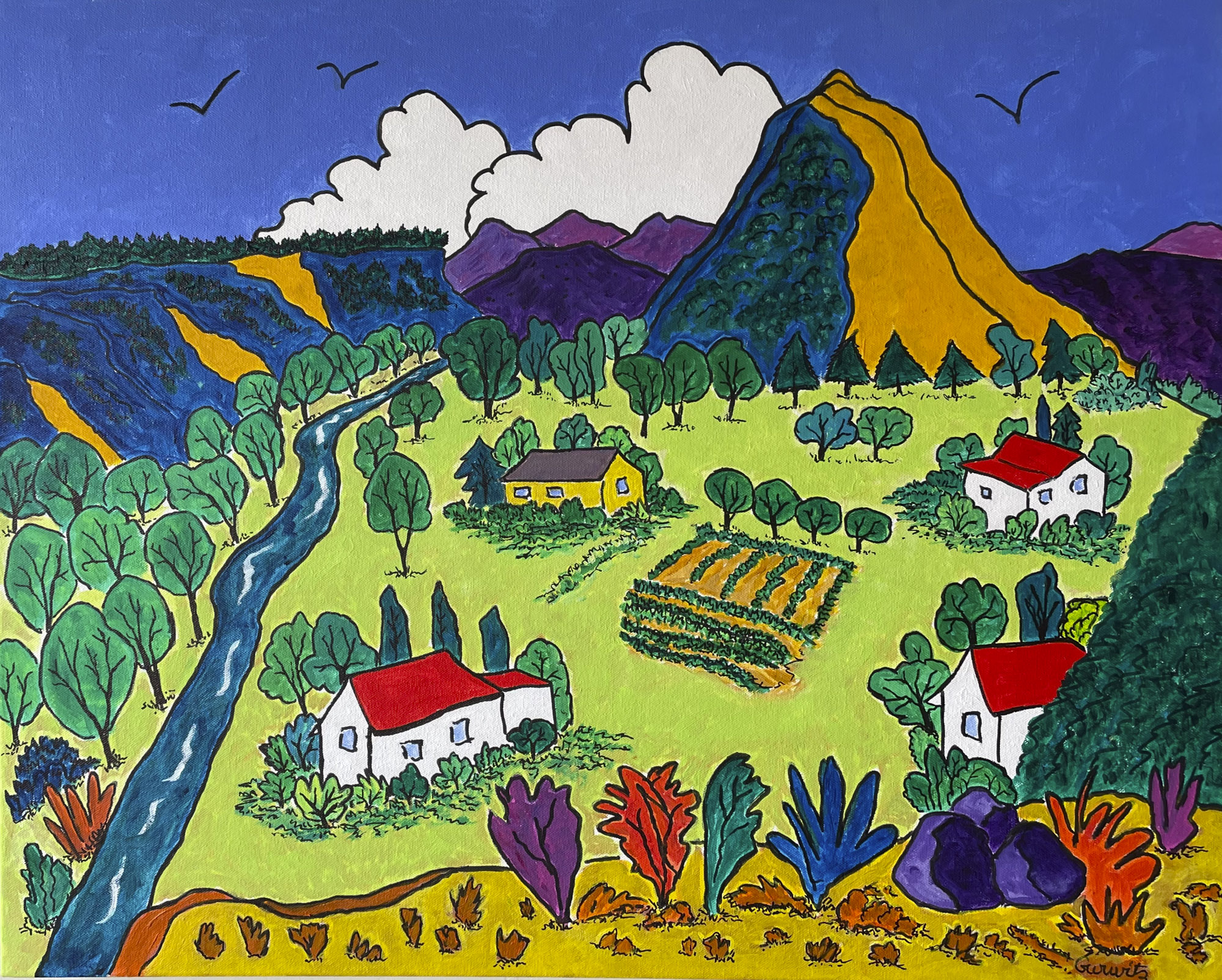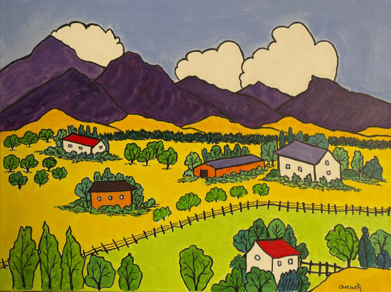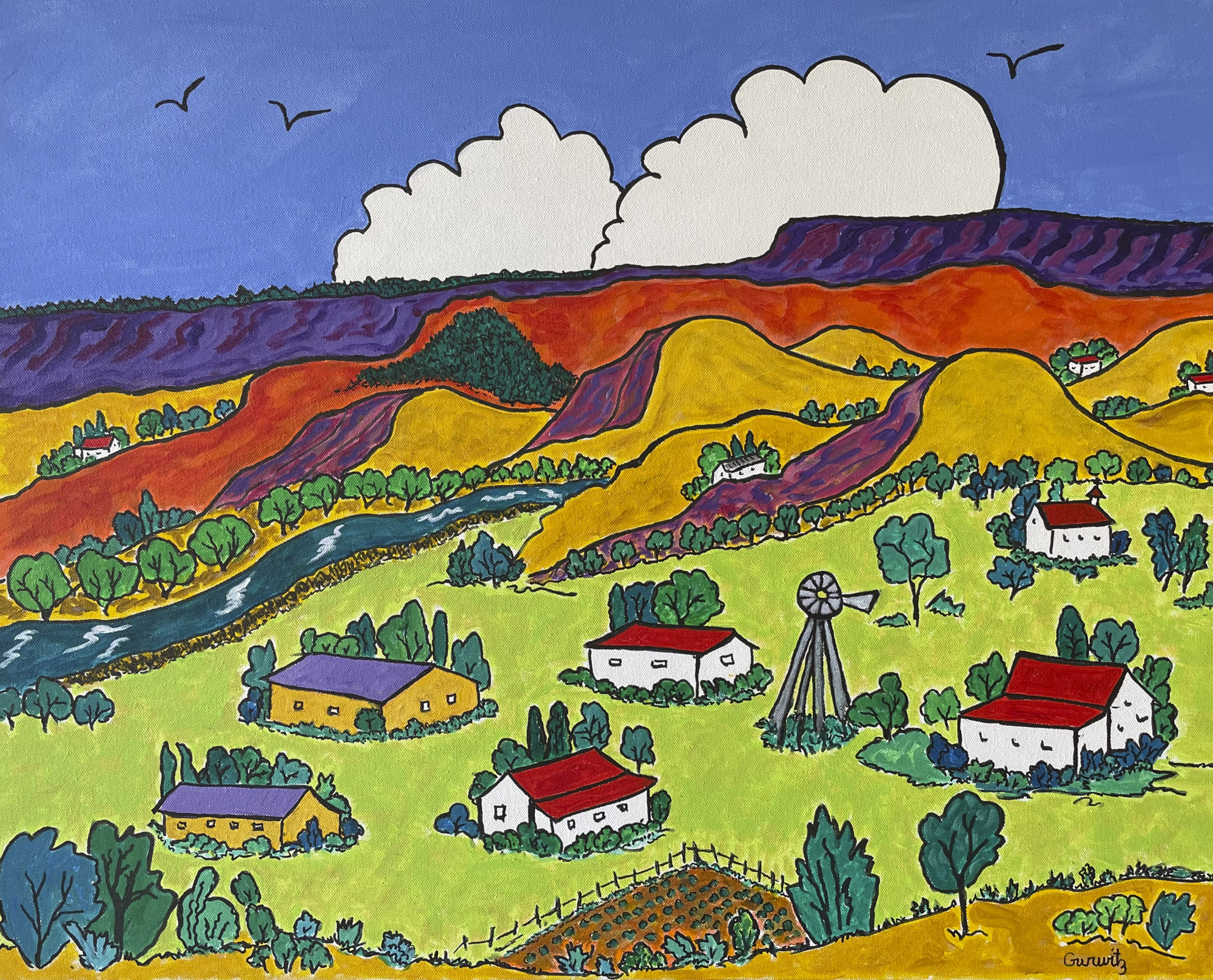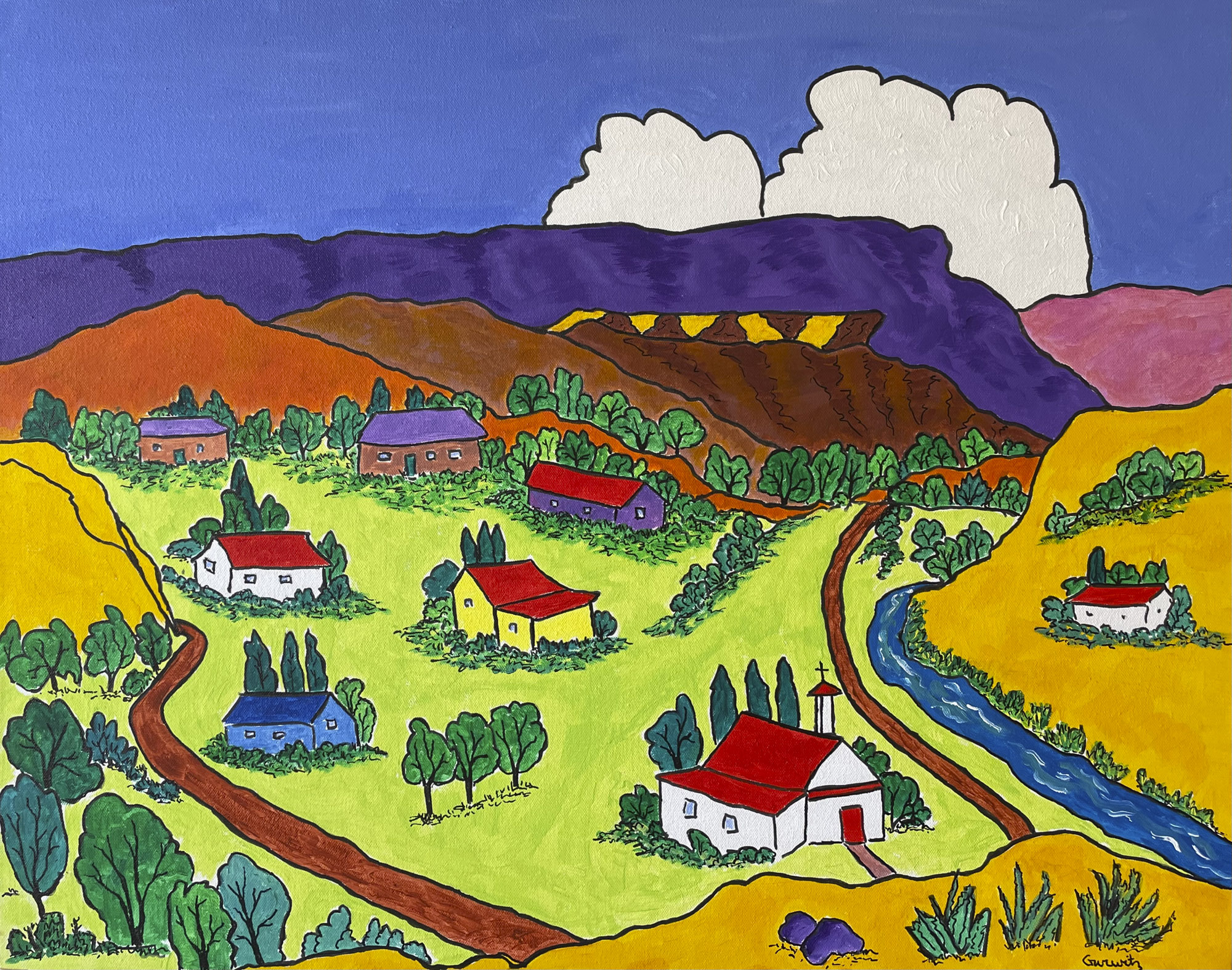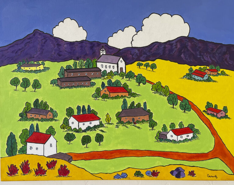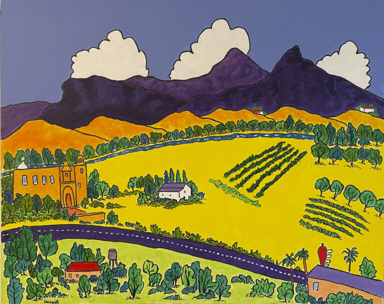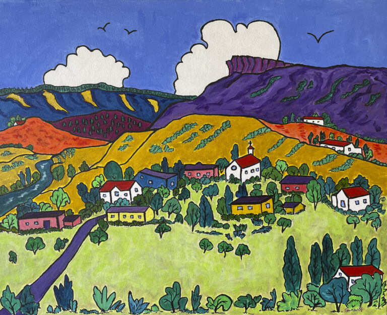I have been painting for most of the last 55 years. After leaving home at 18, I became a city dweller, painting my way through Boston, New York, California, and Madrid, Spain, Ithaca, Greece, and Provence, France, allowing those places to influence my work in the months and/or years spent in each area. In 1960, I moved to Boston. The early work was influenced by 1960’s Boston artists and the many impressionist pieces circulating through the Boston Museum, including works by Matisse, Picasso, Francoise Gilot, Modigliani, and most importantly, Van Gogh. At this time, I worked as a figurative artist. This method of work continued with some still life and interior work throughout the 1970’s. The years in New York and Spain (1975-79) the figurative work became surrealistic. In 1979 I moved to Arizona and settled in Tubac for the next 10 years. Upon this change of scenery, I ceased working with acrylic paints and turned back to the use of oil paints, continuing with interiors, still life compositions and figurative work while gradually moving into landscape painting.This evolution continued into the mid 90’s when my work was described as ‘fauvist, expressionist, magical realism, modernist’. Responding to the landscape of Arizona and especially New Mexico, I found that what resonated for me were the shapes and vibrations of colors. My paintings, while interpretive, still held a strong sense of place. I became quite passionate about the villages of New Mexico and Southern Arizona during this time. The work was the result of frequent travels in the Southwest (and other countries), often relying on photographs taken, being a studio painter.